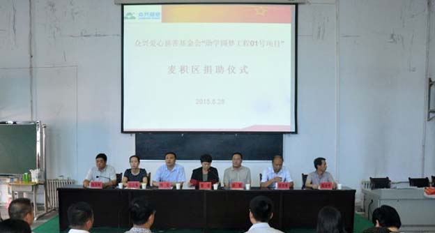 2015年8月28日,由眾興菌業(yè)時(shí)任董事長陶軍發(fā)起成立的“天水眾興愛心慈善基金會(huì)”,在天水市二中舉行了“助學(xué)圓夢工程01號(hào)項(xiàng)目”首批資助款336000元的發(fā)放儀式。